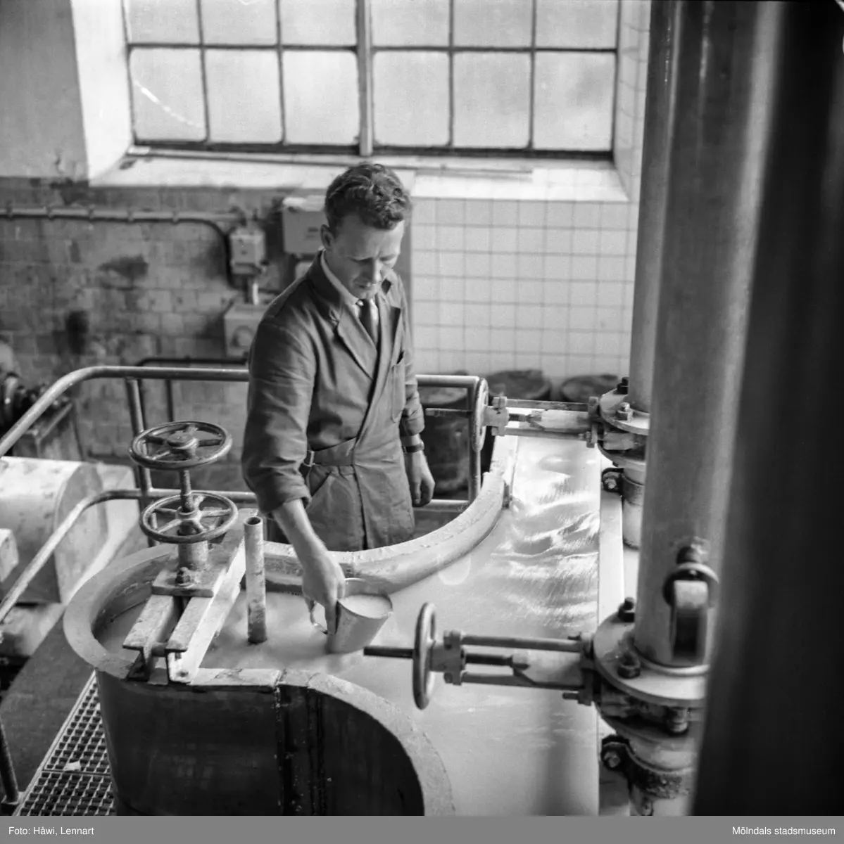 Man i arbete vid maskin på pappersbruket Papyrus i Mölndal, 15/11 1958.