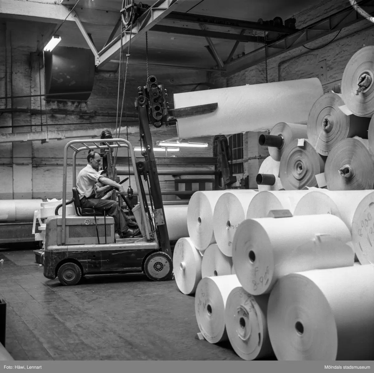 Rulltransport med piktrucken på pappersbruket Papyrus i Mölndal, 1/10 1959.