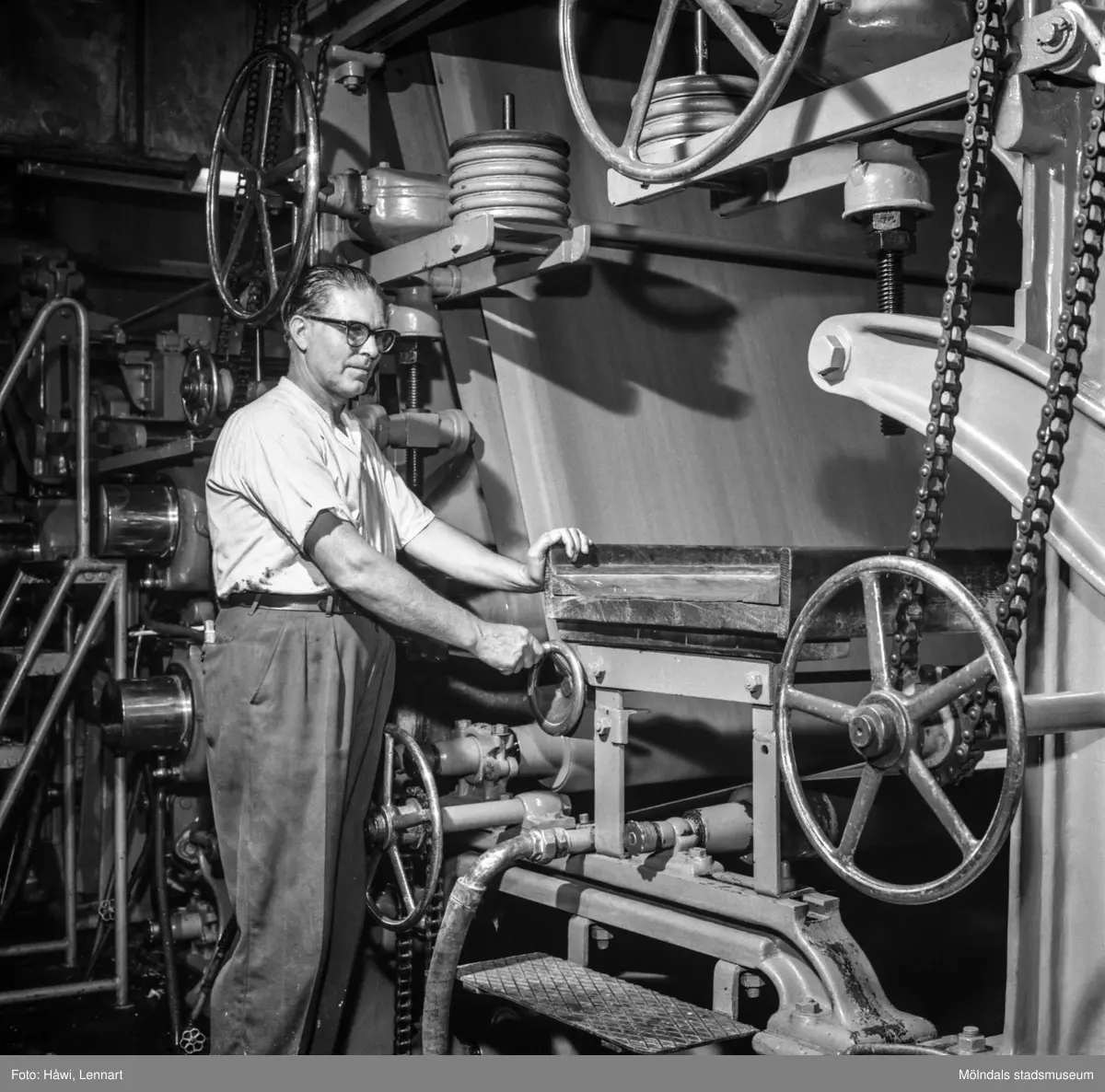Carl Magnusson, förare av PM12 på pappersbruket Papyrus i Mölndal, 1/10 1959.
