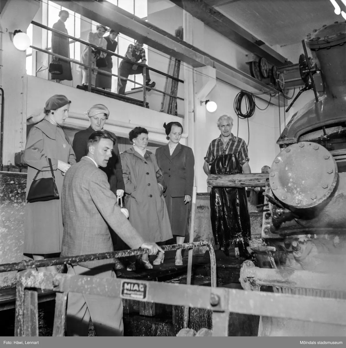 Fabriksvisning för Papyrus anställdas anhöriga. Sliperiet på pappersbruket Papyrus i Mölndal, 28/5 1957.