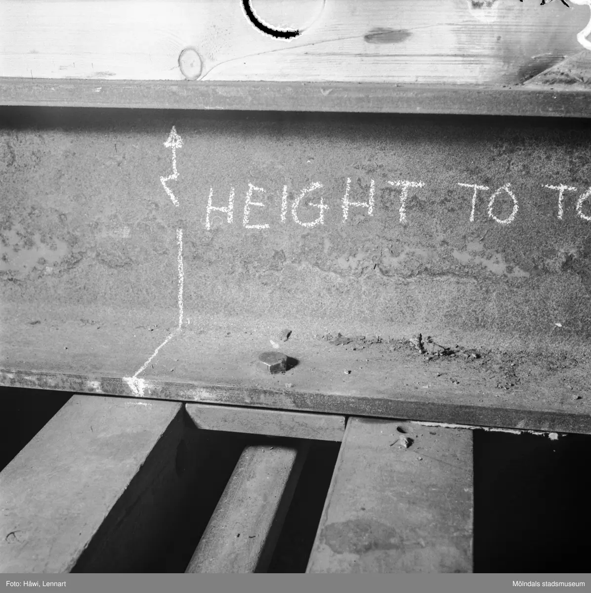Transport av PM2 yankeecylinder på pappersbruket Papyrus i Mölndal, 12/4 1957. Detaljfotografi av en stålbalk.