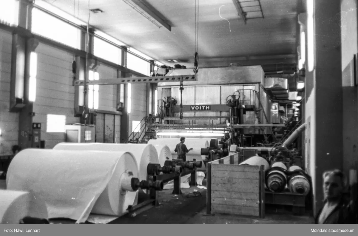 Man i arbete vid maskin på pappersbruket Papyrus i Mölndal, hösten 1970.
