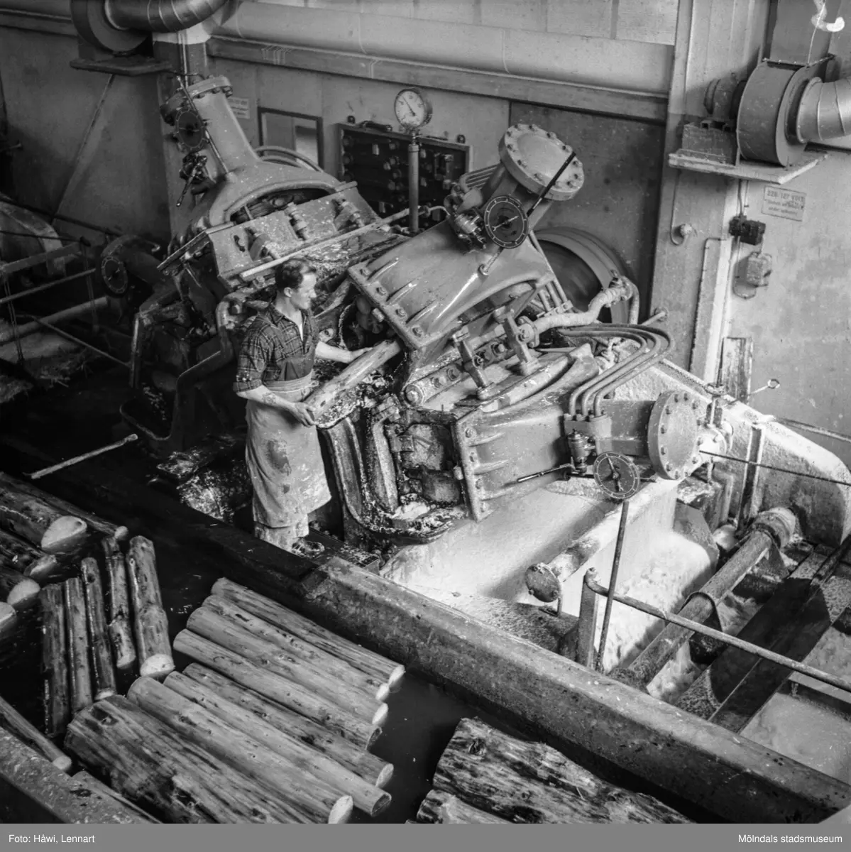 Man i arbete vid sliperiet på pappersbruket Papyrus i Mölndal, 5/5 1955.