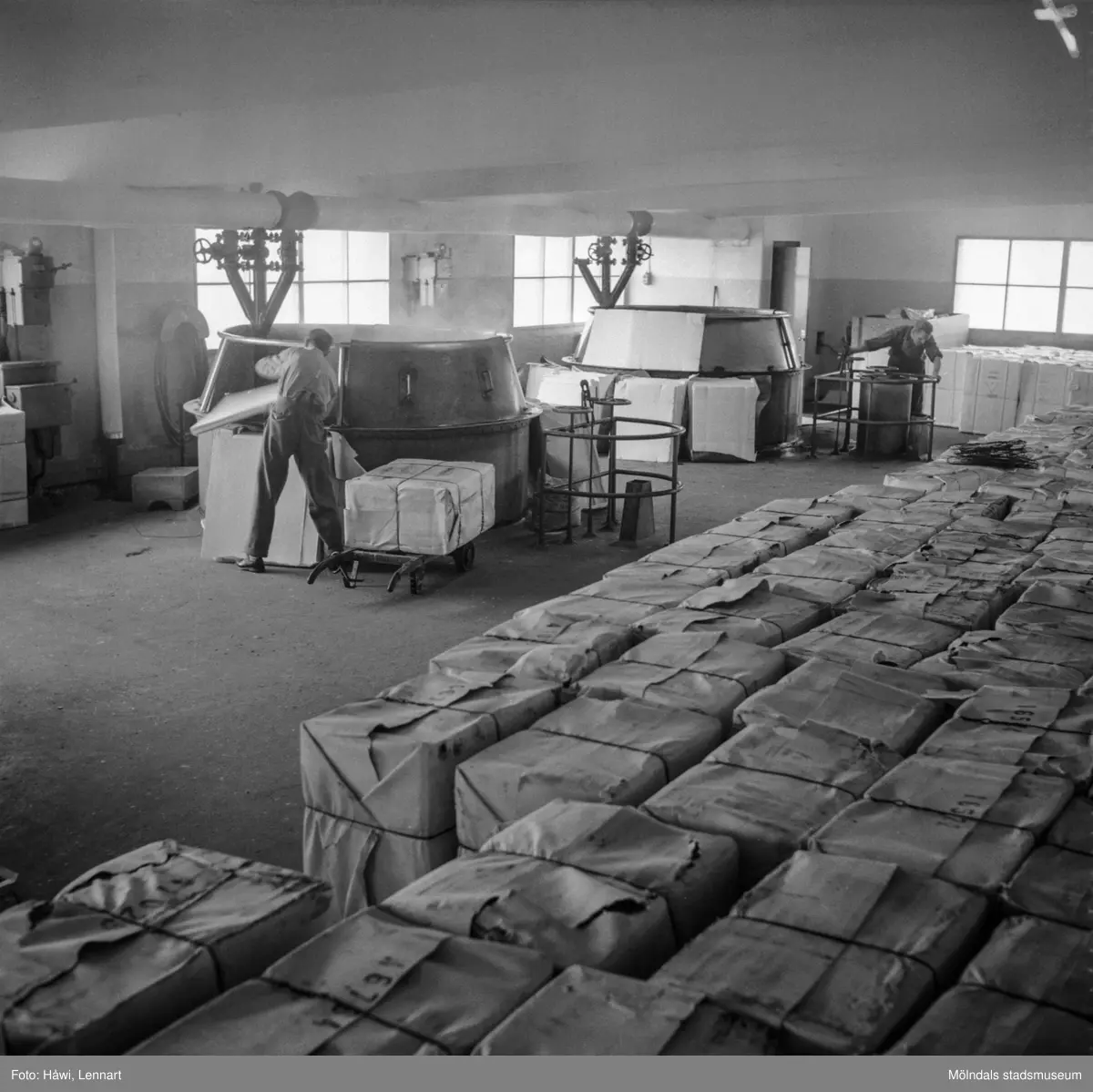 Titel: Män i arbete vid hydropulper på pappersbruket Papyrus i Mölndal, 6/5 1955.