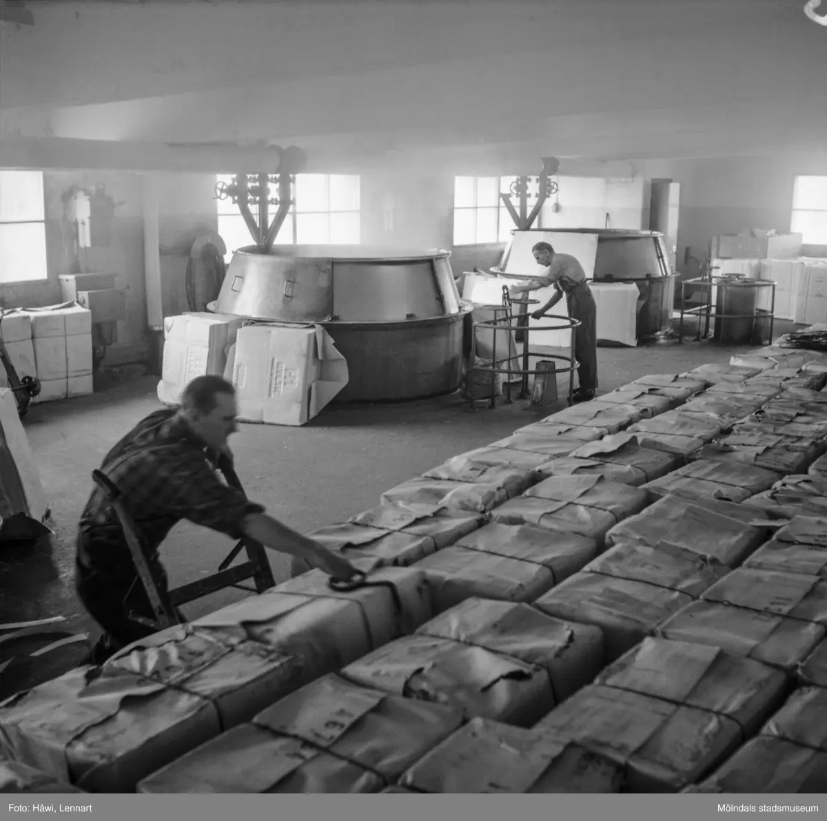 Män i arbete vid hydropulper på pappersbruket Papyrus i Mölndal, 6/5 1955.