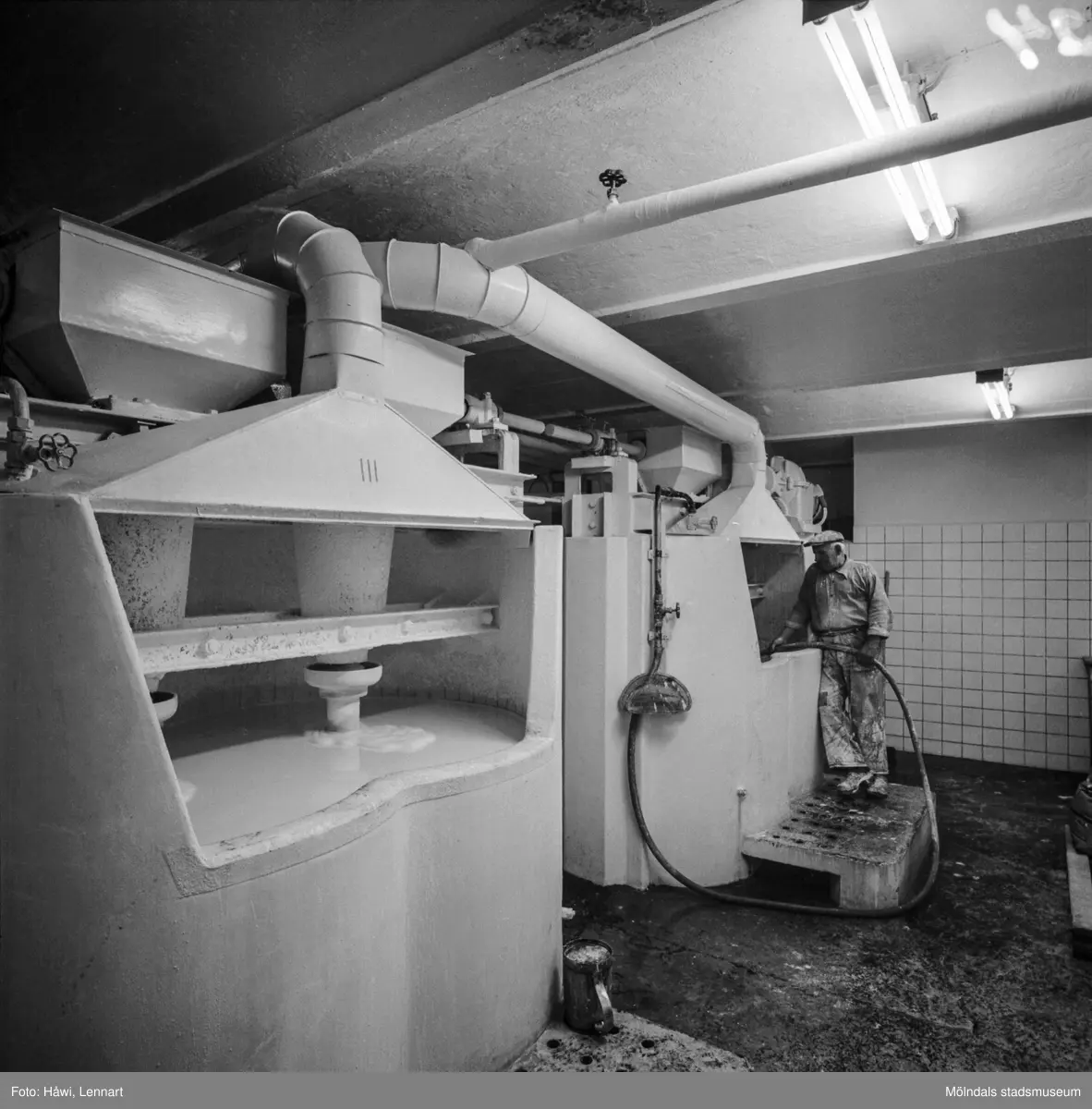 Man i arbete på satinvittavdelningen på pappersbruket Papyrus i Mölndal, 13/5 1955.