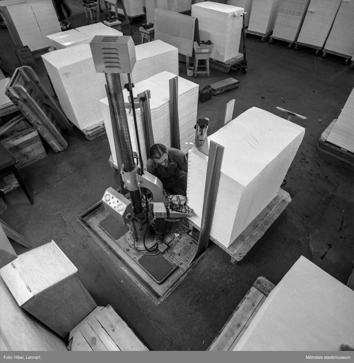 Man i arbete med räknemaskin för papper på pappersbruket Papyrus i Mölndal, 3/6 1955.
