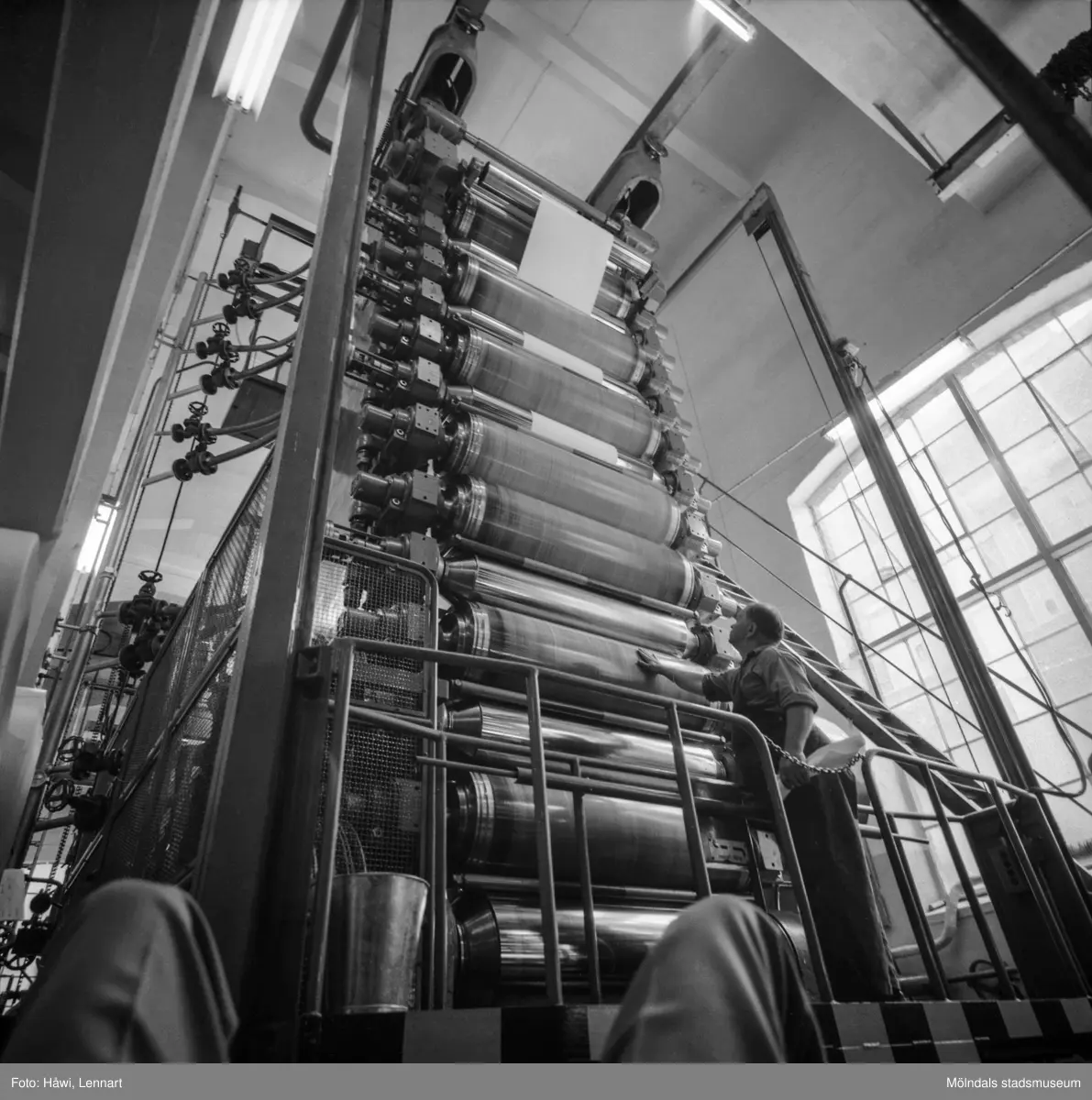 Man i arbete vid glätt nr 17 på pappersbruket Papyrus i Mölndal, 3/6 1955.