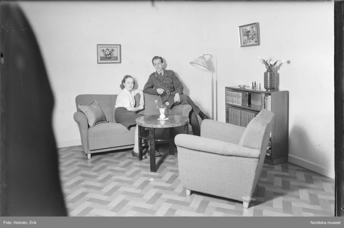 Interiör, man och kvinna i soffgrupp ”Eriksson”