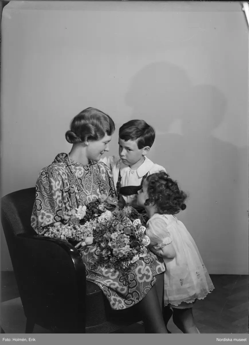 Titel: Kvinna med flicka och pojke
