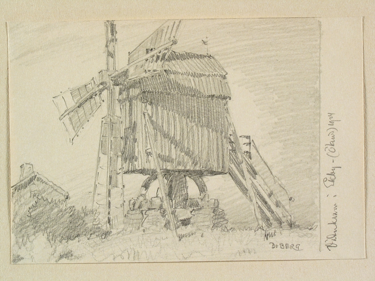Öland, Runstens hd., Egby. Väderkvarn. Teckning av Ferdinand Boberg.