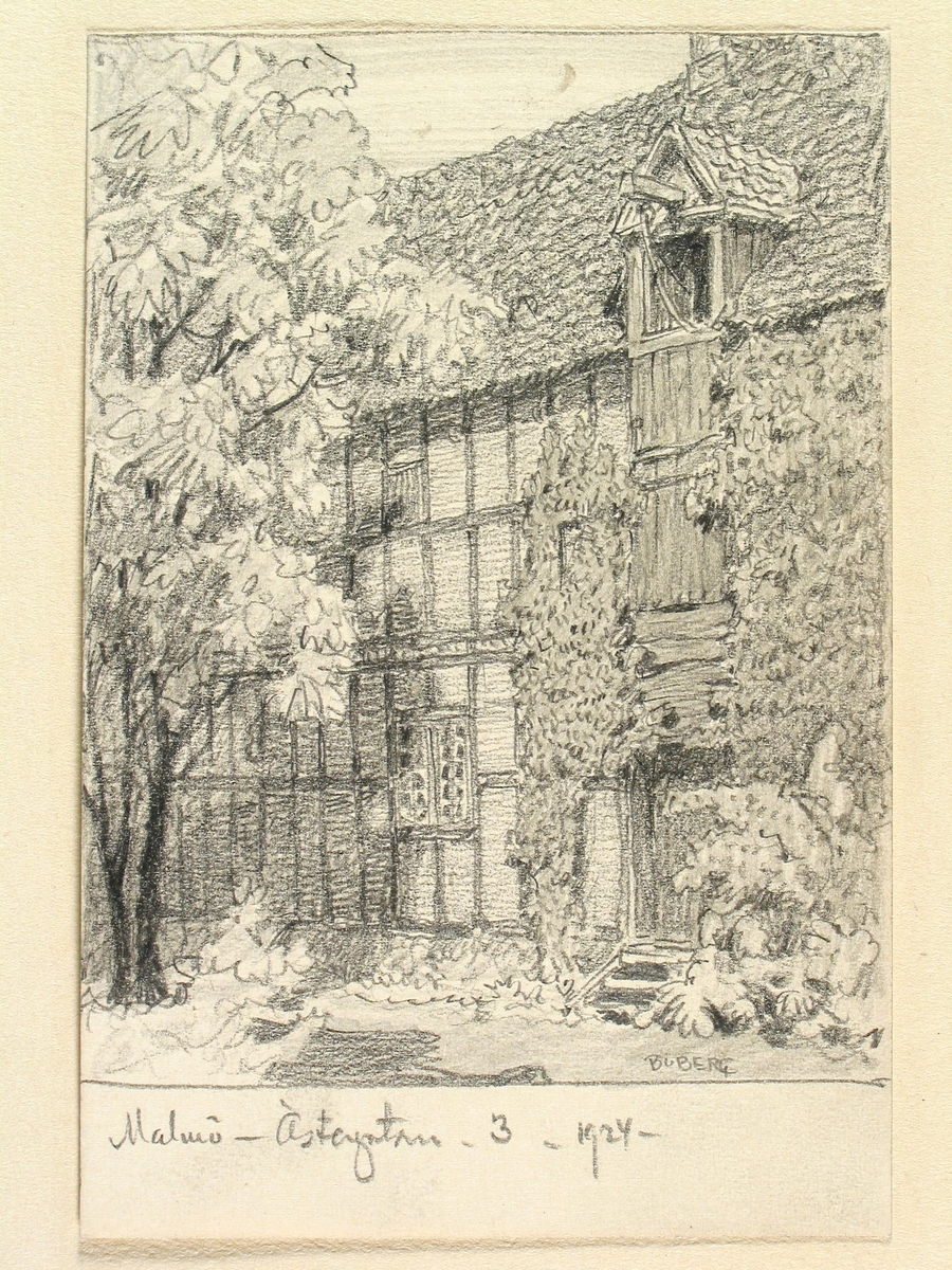 Teckning av Ferdinand Boberg. Malmö, Östergatan 3