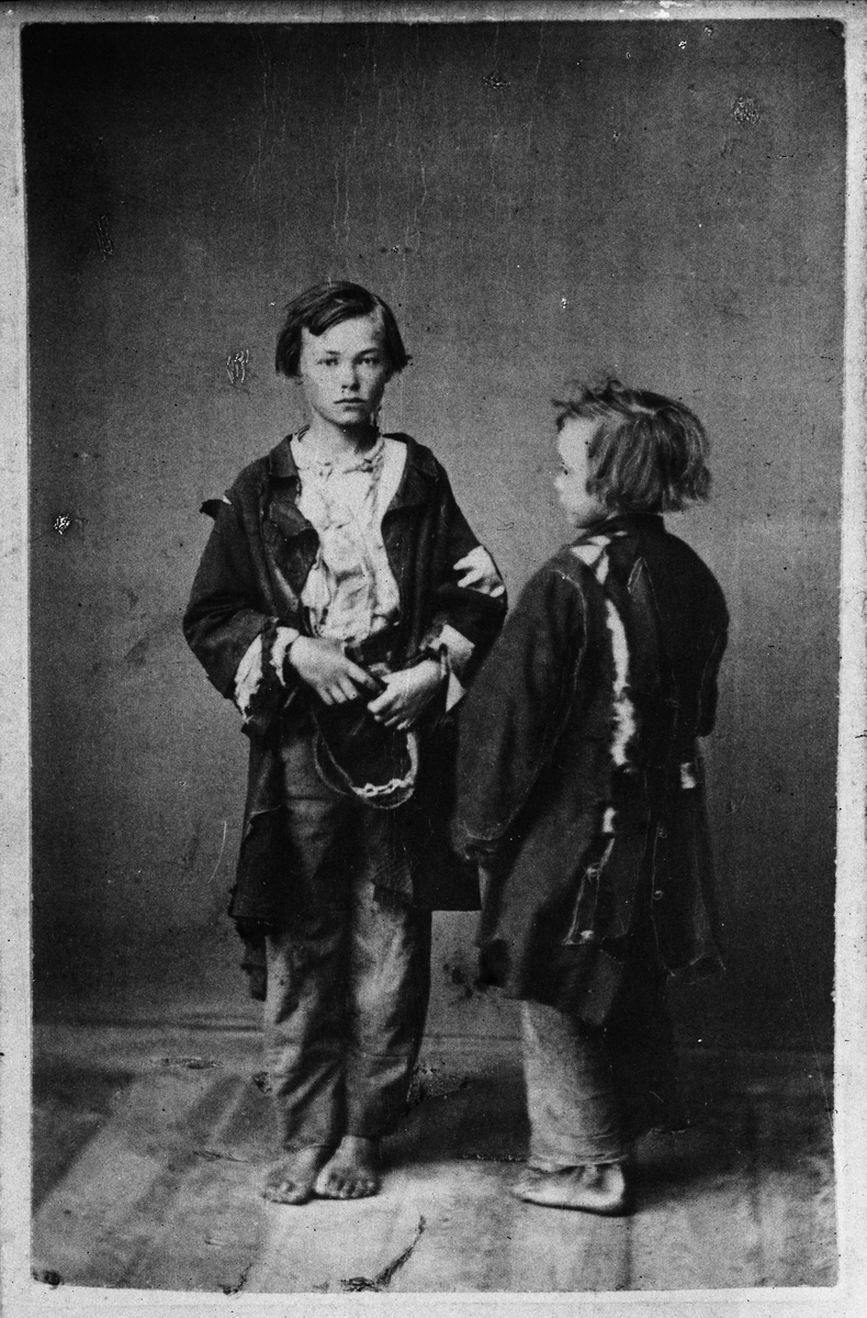Två av Trasskolans barn. Foto ur broschyren "Om Trasskolan i Hornskroken", filantropisk skrift som såldes till förmån för skolan.