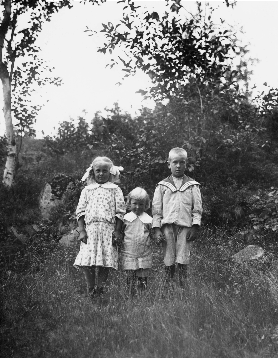 "Syskon." En flicka och två pojkar. Lima socken, Dalarna.