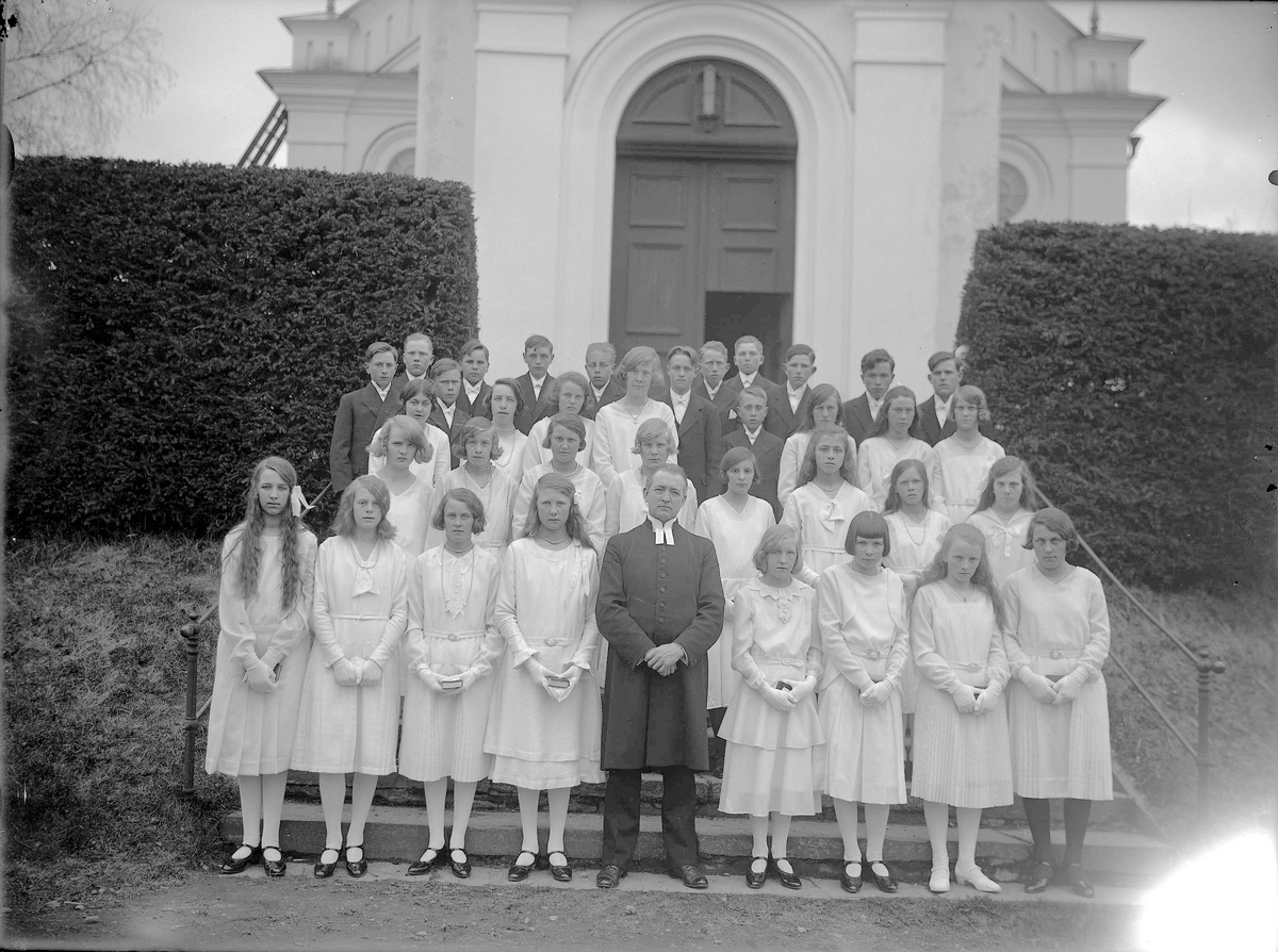 Gruppfoto av konfirmander i Lima med kyrkoherde Henrik Lindberg.