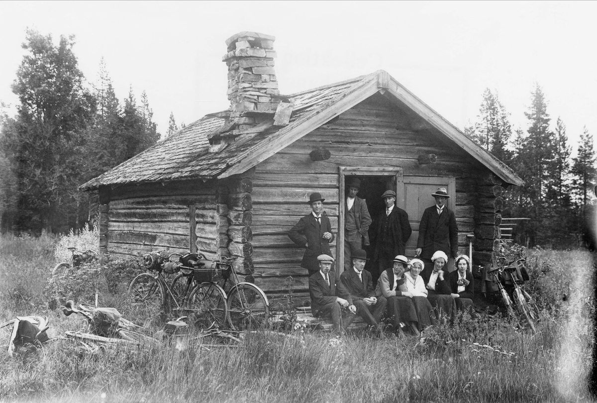 Ungdomarna från Risätra med Renströmska kamratgänget på väg till nykterhetsmöte på gränsgatan till Norge. Här ordnades troligen rast över natten, Skarsåsens fäbod