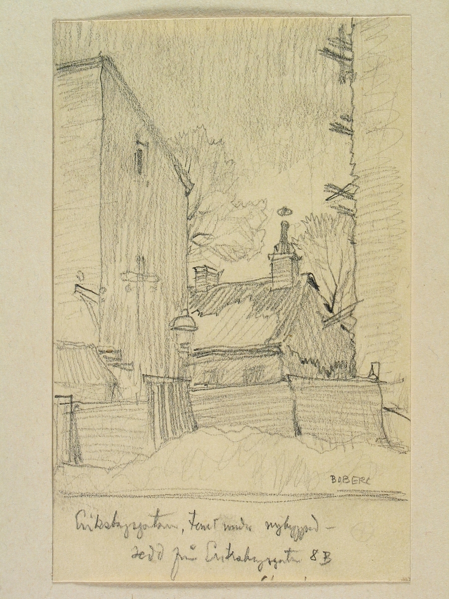 Teckning av Ferdinand Boberg. Stockholm, Östermalm, Kv. Eriksbergsgatan