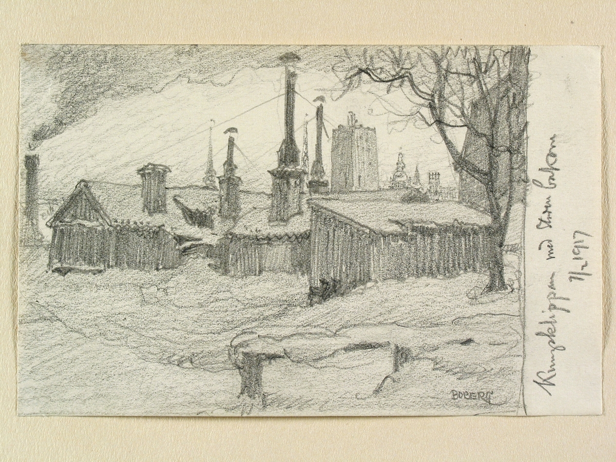 Teckning av Ferdinand Boberg. Stockholm, Kungsholmen, Kv. ?Bergssklippan st?, Kungsklippan