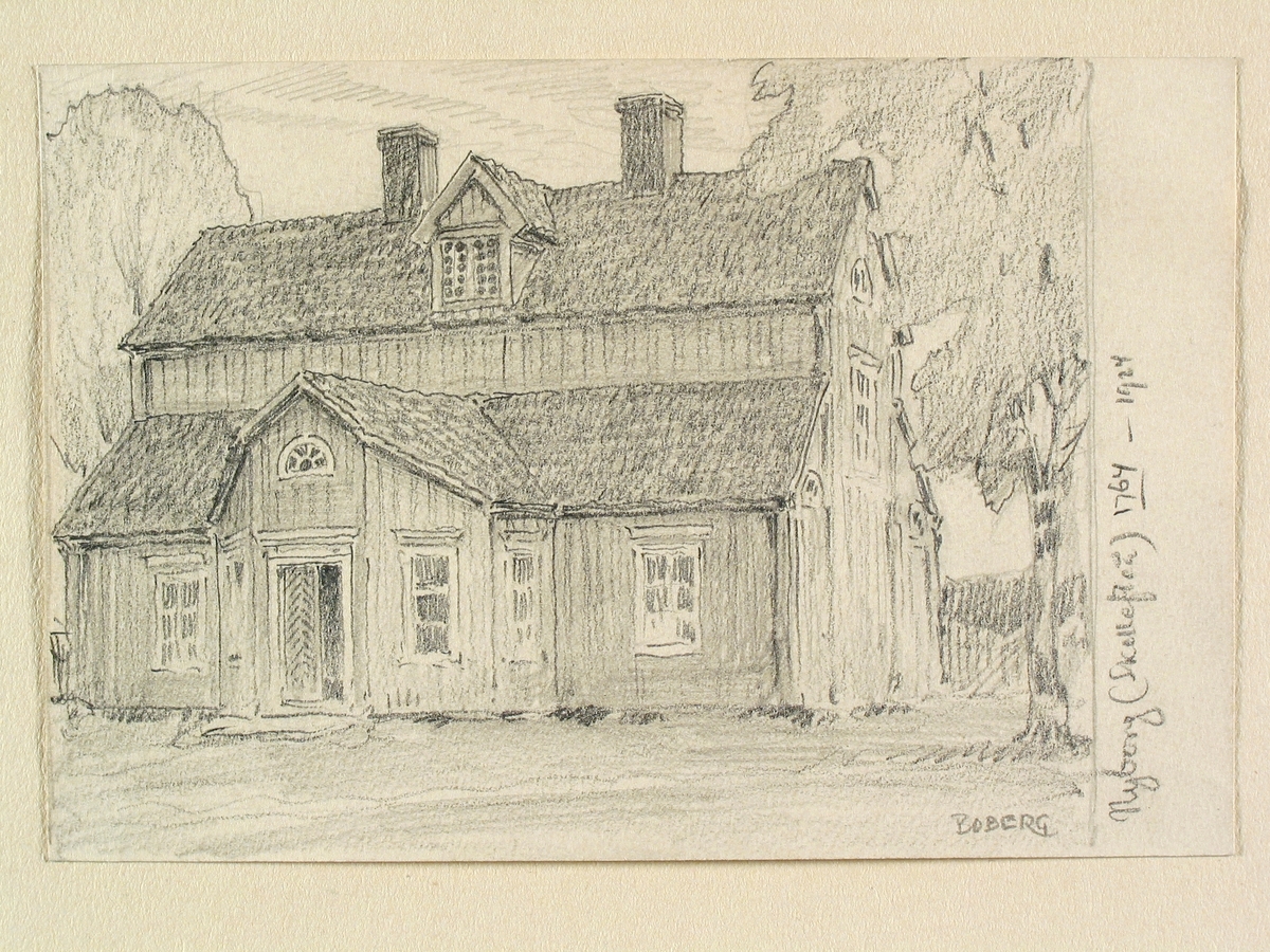 Teckning av Ferdinand Boberg. Västerbotten, Skellefteå landsf., Nyborg