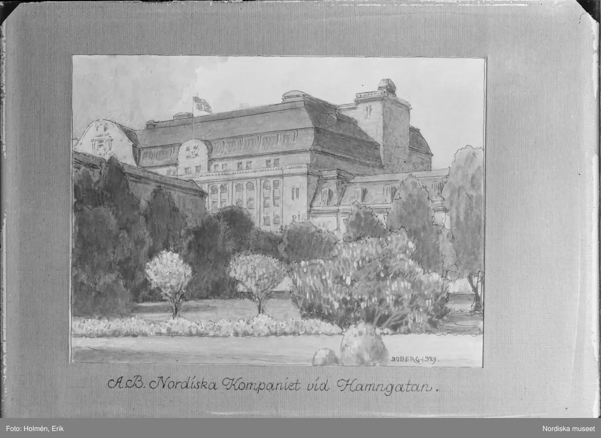 Teckning: ”AB Nordiska kompaniet vid hamngatan”, ”Boberg 1929”