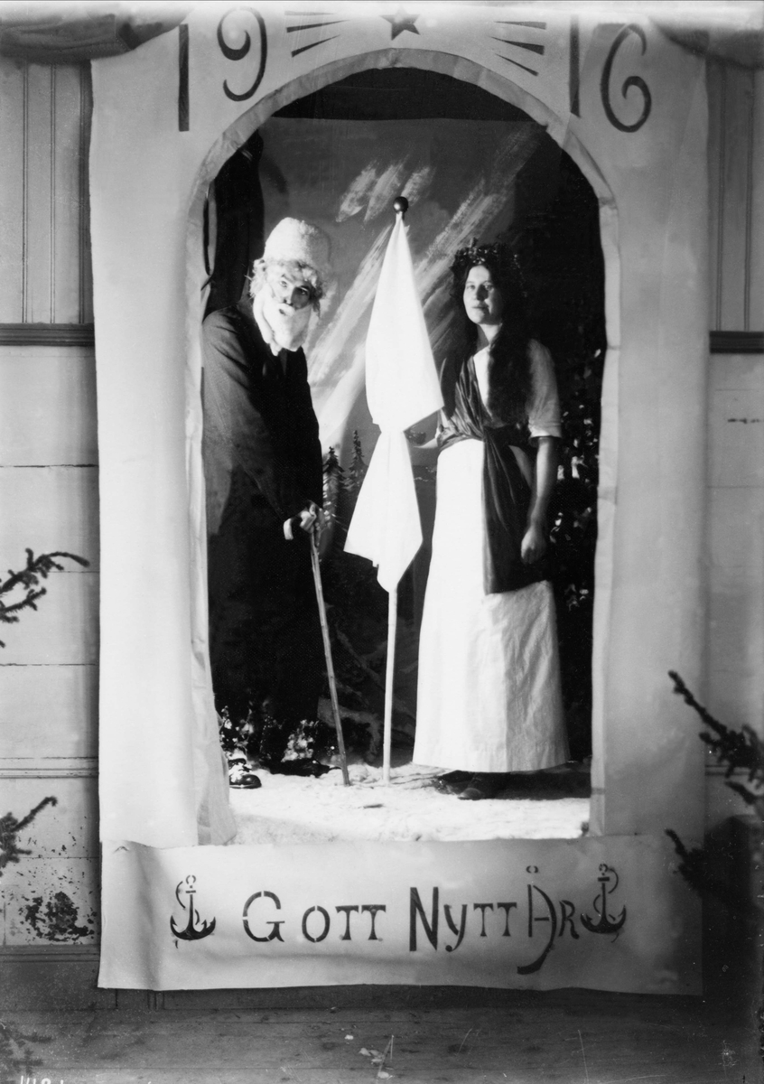 Nyårstablå. Gamla o Nya året! Hjalmar Elmgren och Hedvig Renström