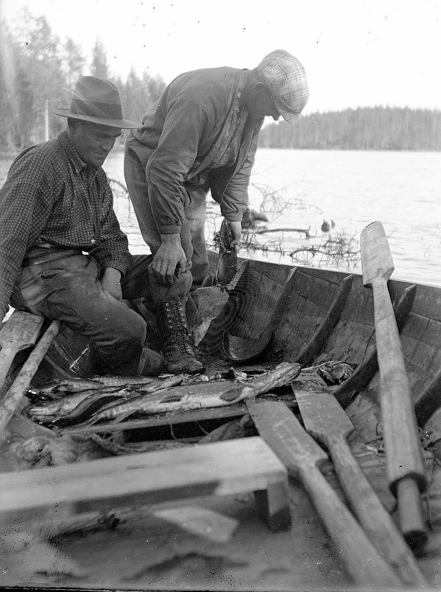Fiskare med sin fångst i en båt.