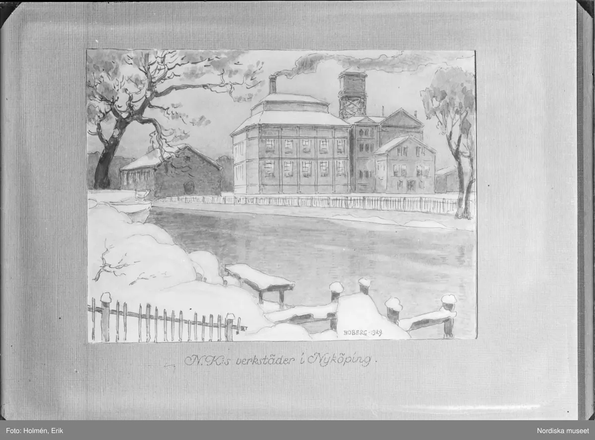 ”NKs verkstäder i Nyköping” teckning av Boberg.