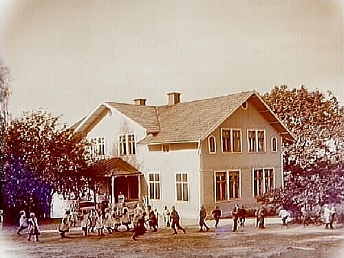 Glashyttans skola, en och en halvvånings skolbyggnad med frontespis och förstebro.