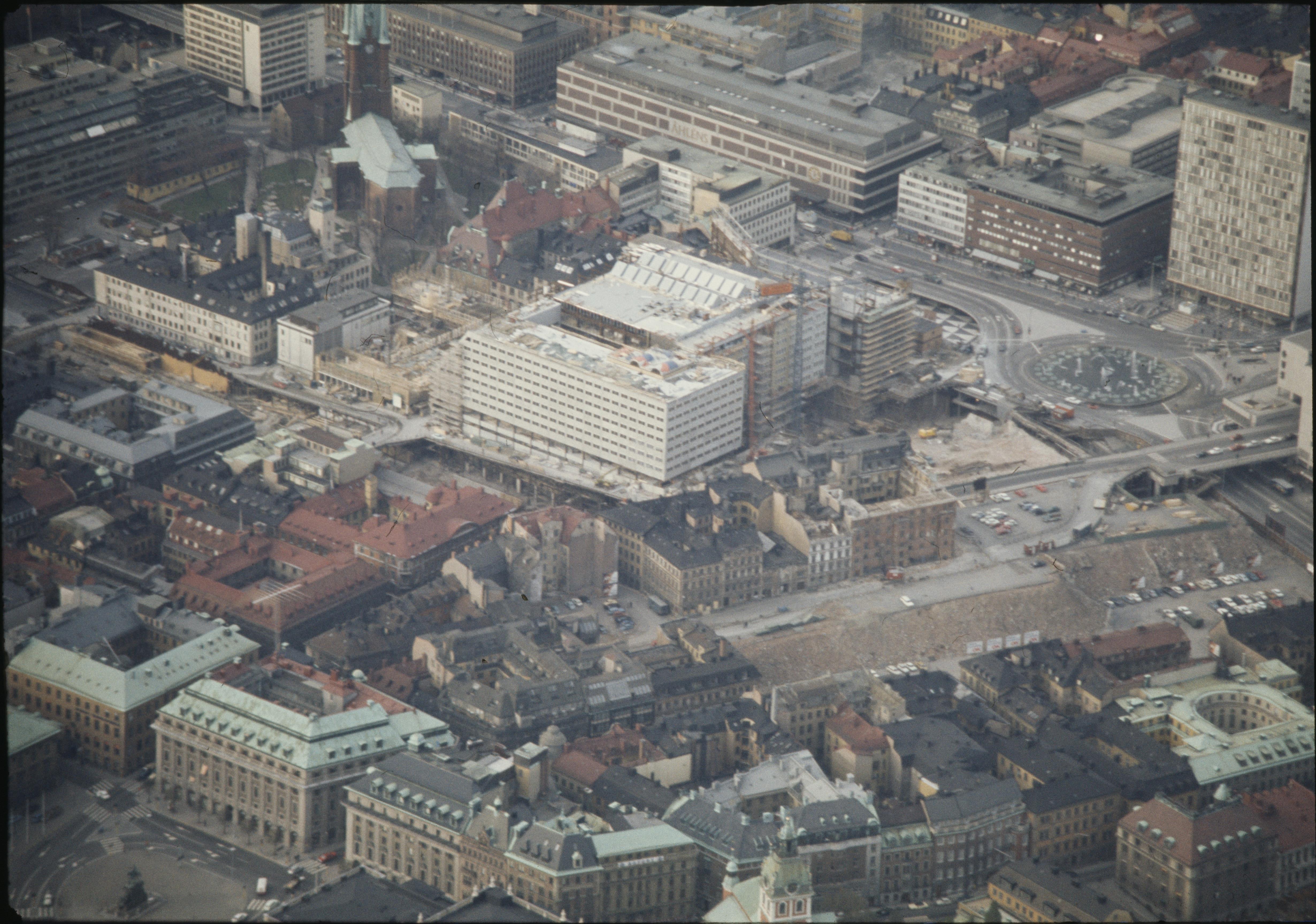 Riksdagshusbygget, Sergels torg, Klara kyrka och Brunkebergstorg. City. Rivningar.