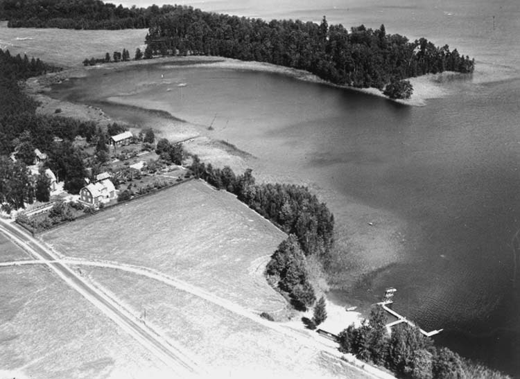 Flygfoto över Rosendalsbadet och Kvistudden, Aspabruk.