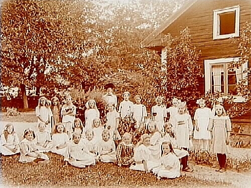 Almby skola, en och en halvvånings bostadshus i liggtimmer.