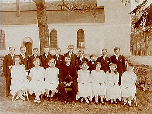 7 flickor, 10 pojkar och kyrkoherde Areborg.
