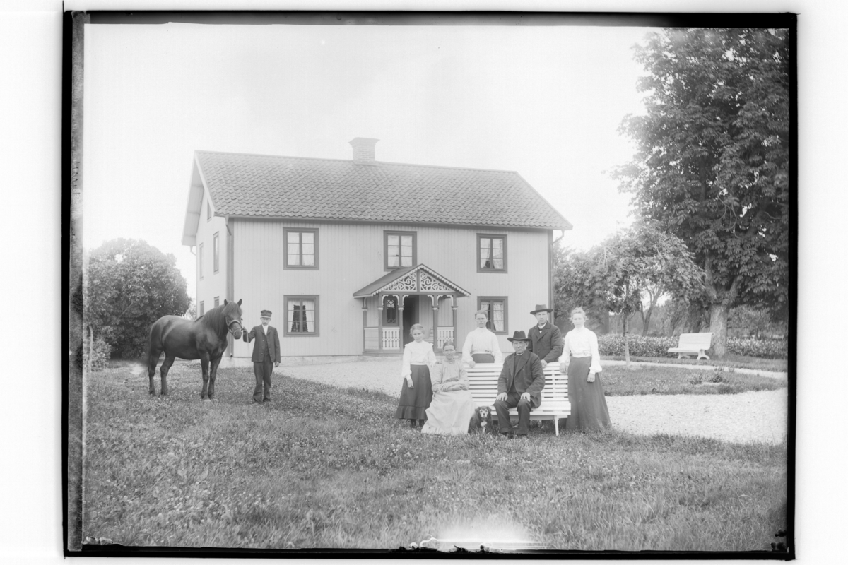 Tvåvånings bostadshus, 7 personer och en häst.