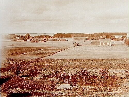 Bondgårdar och sjön Hjälmaren.