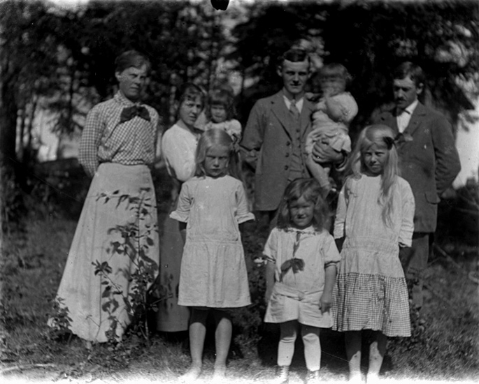 Till vänster fru Sigrid Thunberg, till höger Sven Thunberg, deras två döttrar, i mitten troligen hans kompanjon med familj.
