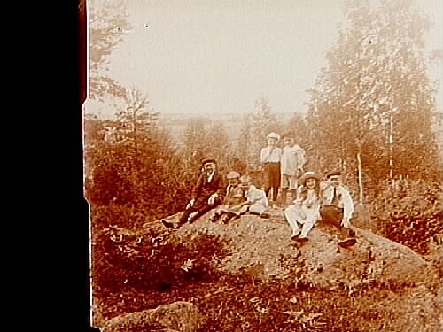Titel: Grupp, 7 barn. Sam Lindskogs familjebild. Två bilder på samma glasplåt.