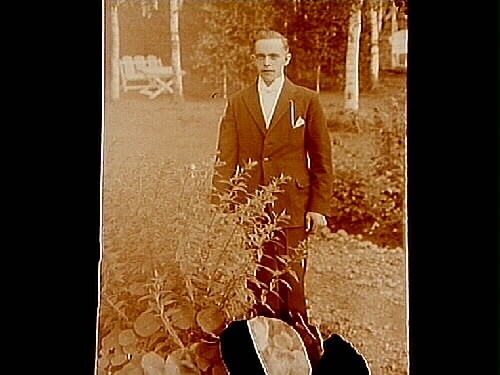 En man i trädgården.