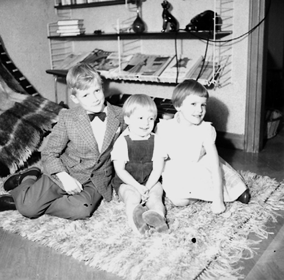 Titel: Rumsinteriör, tre barn. Lasse Ohlsson