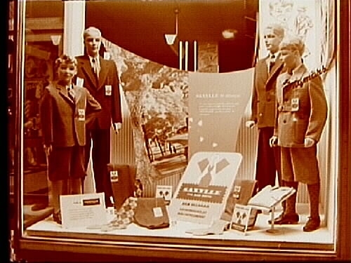 Ingmars skyltfönster, kläder av saxylle.