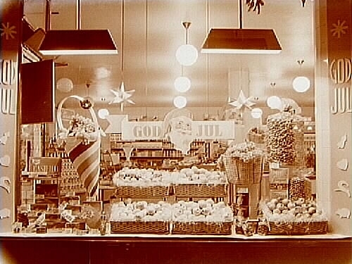 Konsums skyltfönster, frukt m. m.