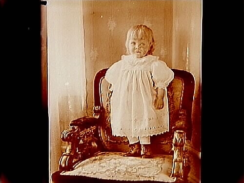 Ett litet barn i karmstol.