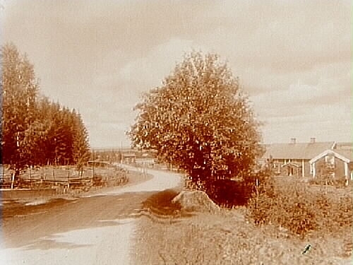 Landsvägen. En och en halvvånings bostadshus med förstuga. En flygelbyggnad och ekonomibyggnader.
