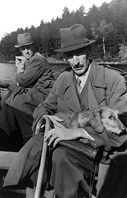 Jägmästare Söderström med taxen, Herbert Löfstrand styr.
