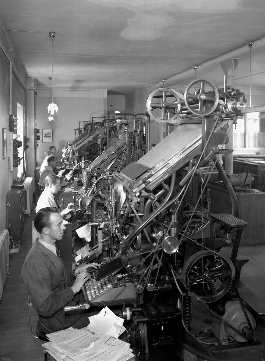 Tidningen Dagen. Evangeli Press. Interiör och arbetare.