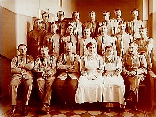 Sjukhuset, 18 sjukvårdare och 2 sjuksköterskor.