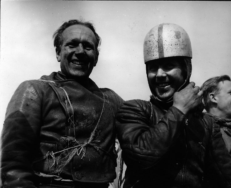 Kumla "Frasse" (Evert) Fransson och Bertil Carlsson (Djursholm) vid Sannahed motorstadion, Kumla.