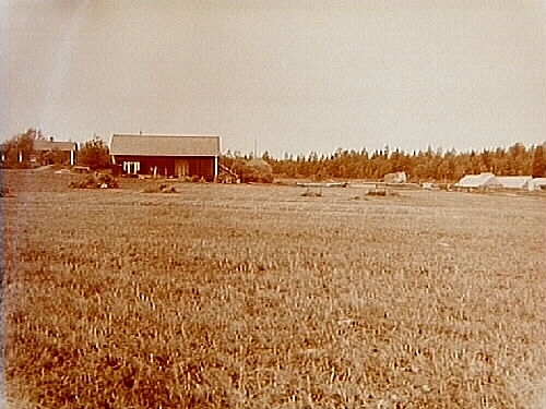 Envånings bostadshus med förstebro, ekonomibyggnader och växthus.