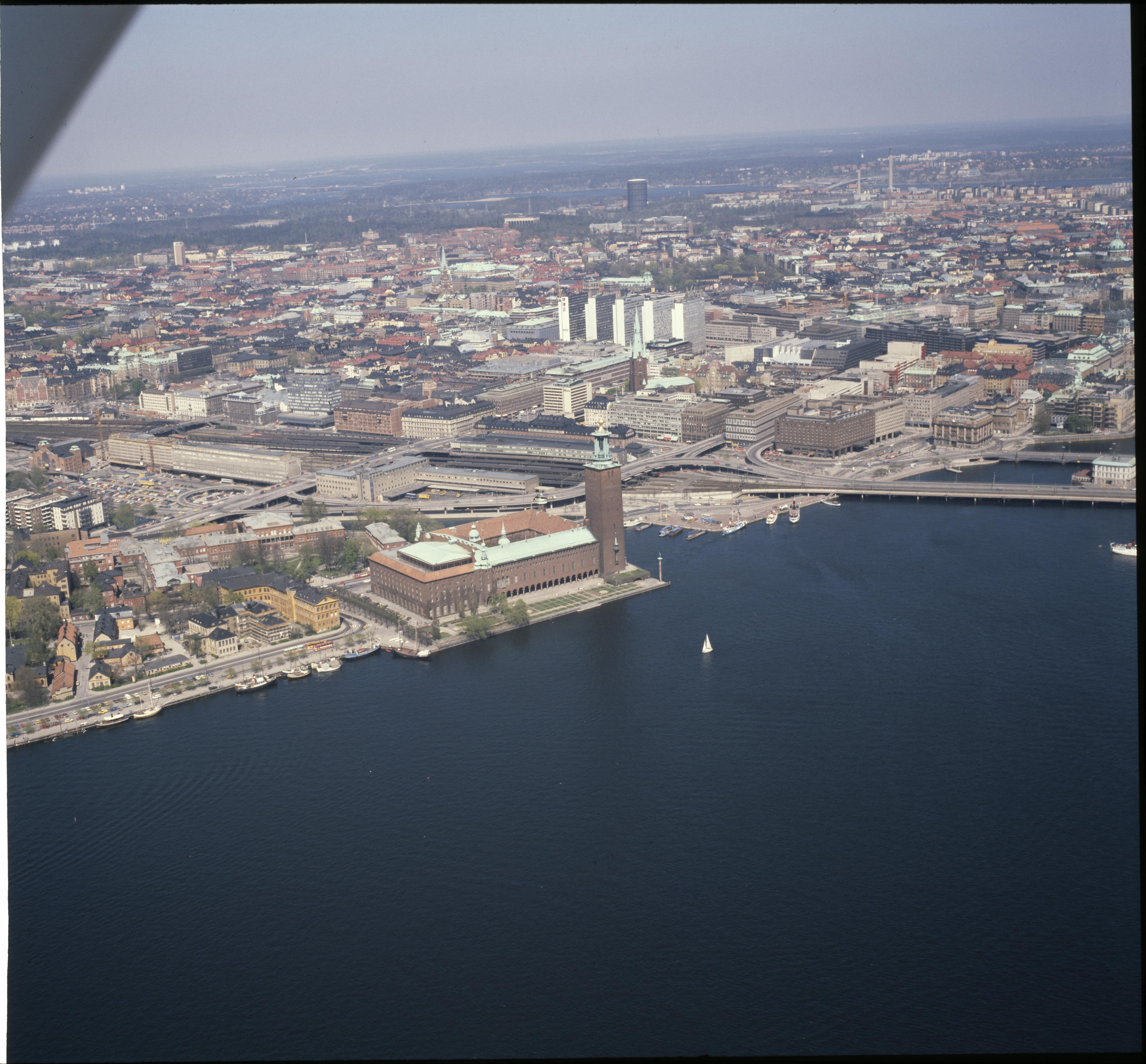 Stadshuset på Kungsholmen, Tegelbacken, Centralstationen och Norrmalm. City