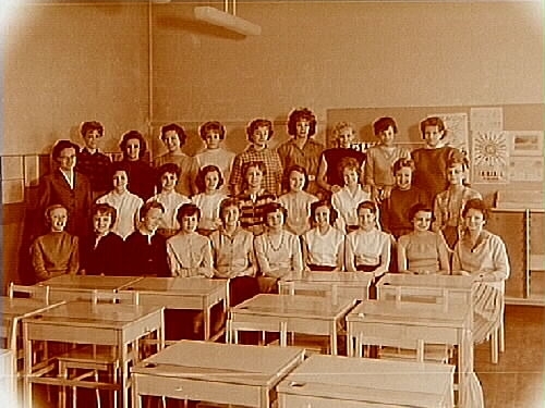 27 flickor och lärarinna fru Margareta Hjälmarsson.