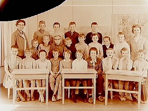 22 skolbarn och fröknarna Dagny Näslund och Elsa Andersson.